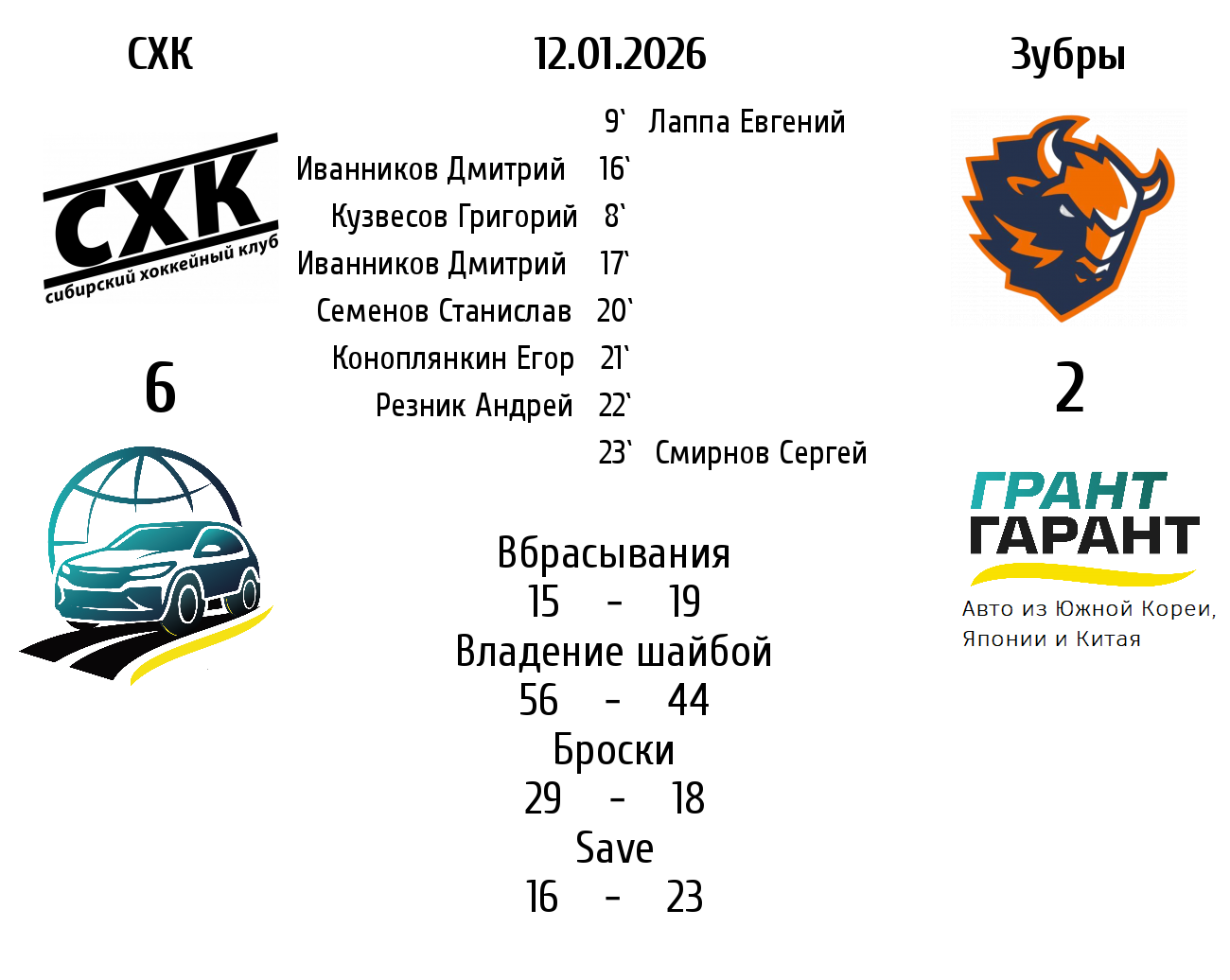 Красноярская федерация хоккея | Зубры | СХК | 2 : 6 | Скачать отчетИзображение |