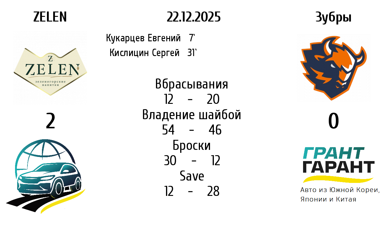 Красноярская федерация хоккея | ZELEN | Зубры | 2 : 0 | Скачать отчетИзображение |