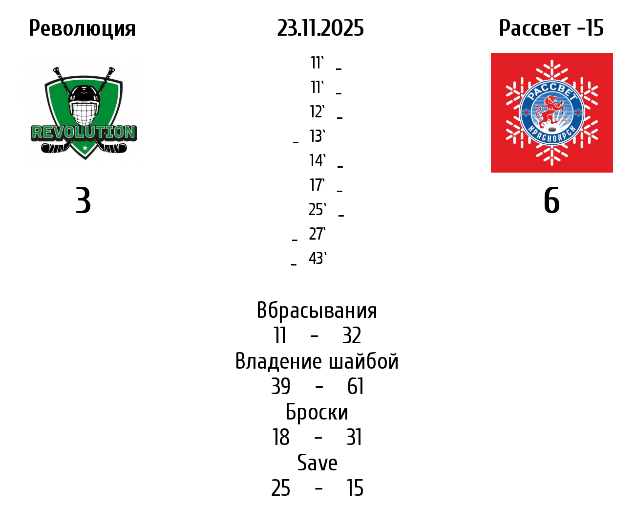Ввод данных | Рассвет -15 | Революция | 6 : 3 | Скачать отчетИзображение |
